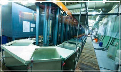 1.鋁、銅、鐵、鋅、金屬材質電鍍。2.白鐵金屬材質、散熱片電鍍。3.銀、錫、鎳、黑鎳自動作業。4.中磷、高磷化學鎳。5.複合鍍化學鎳(鐵氟龍、氮氟龍)。6.鉻及沙丁鎳作業。